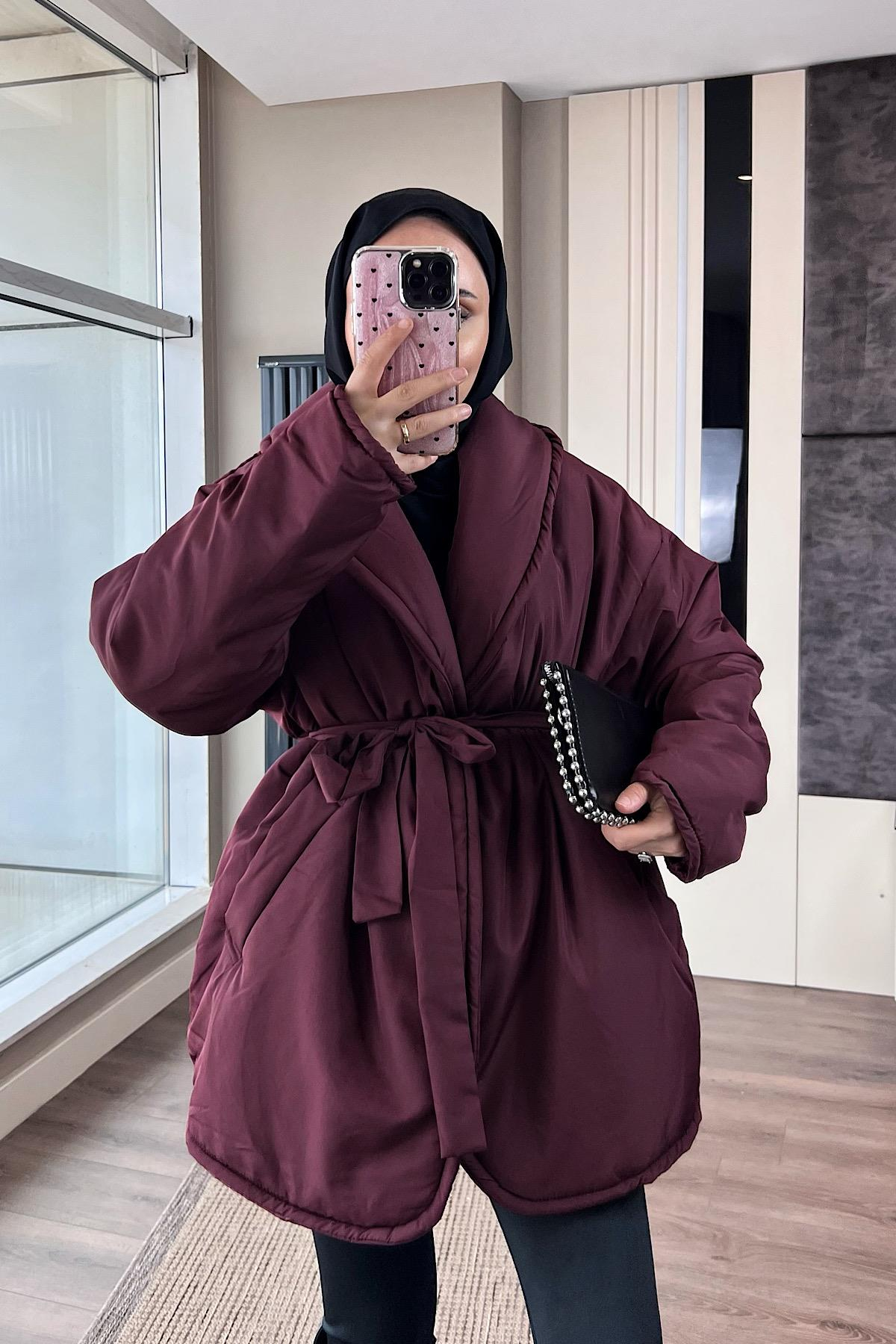 Düz Kuşaklı Şişme Mont BordoDubaiShowroomDIŞ GİYİM05912